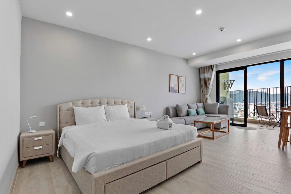 Our condo is in Panorama building, just a few steps to Tran Phu beach and next to Nha Trang city theatre. Its unbeatable location leads you to many attractions in a few minutes walk: City Square, night market, Tram Huong tower, AB Tower department stores, Sailing club,...a lot of shops, cafe and restaurants around the building. Fully equipped kitchen, bathtub, huge sea view balcony, free pool on 6th floor, 24 hours security & lobby. Paid parking on basement.