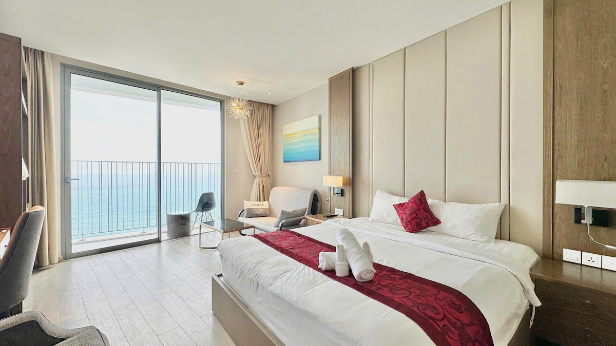 Stay in an upscale place with stunning views overlooking the gorgeous bay that’s near everything you want to visit.Seaview from the balcony and your family will be close to everything when you stay at this centrally-located place. Only 5 mins walk to the main local market ('Đầm market) and the beach. The surrounding area has many local eateries and convenience stores. Lotte mart is also in walking distance.