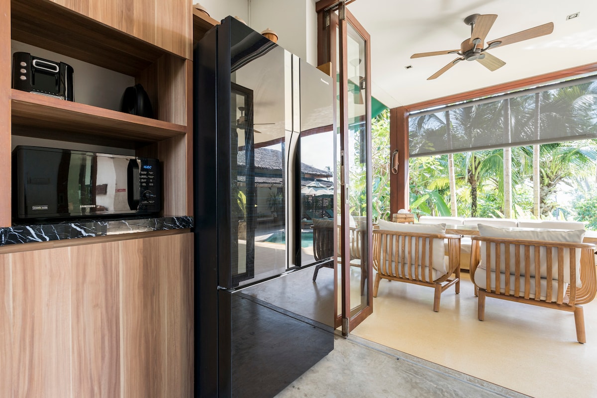 Located close to the beach, our eco-luxury retreat invites you to a harmonious blend of tropical island living with authentic Thai charm. Enjoy wonderful sea views and relax while surrounded by the lush tropical garden and jungle-covered hills. Refresh in the infinity pool, unwind with wellness treatments in our private outdoor massage area, listen to your favorite music on Bluetooth systems, or relax with a movie on Netflix. Experience resort style service with daily housekeeping and breakfast.