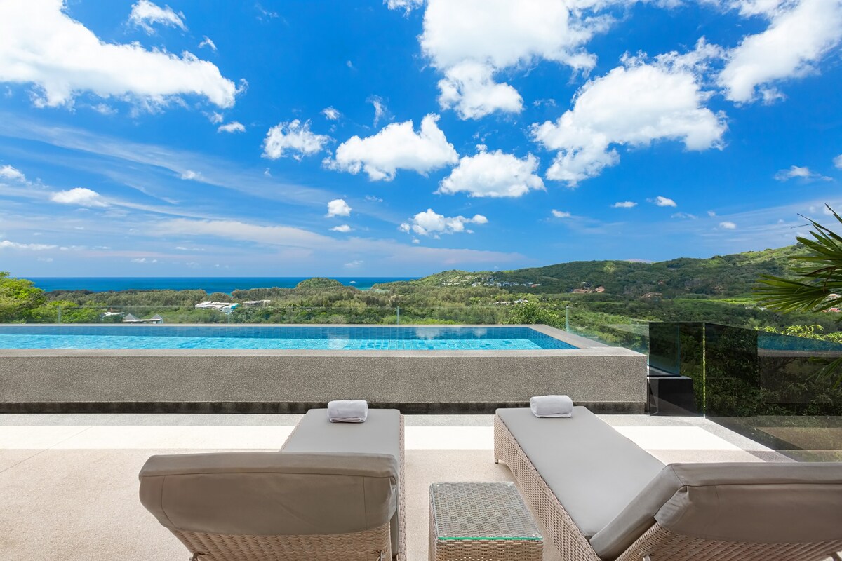 STUNNING MODERN 4BEDROOM SEAVIEW, SUNSET, POOL VILLA IN KAMALA EXQUISITE WITH SWEEPING VIEWS OF THE SUNSET INTO THE ANDAMAN SEA.FULLY RENOVATED with UPGRADED touches in JULY 2022 Set into the mountain top surrounded by stone and jungle. Modern yet accepting of nature, seamless indoor/outdoor living space! You've come to Thailand to explore but you won't want to leave. Don’t dream your life, live your dream. Welcome to your home away from home.