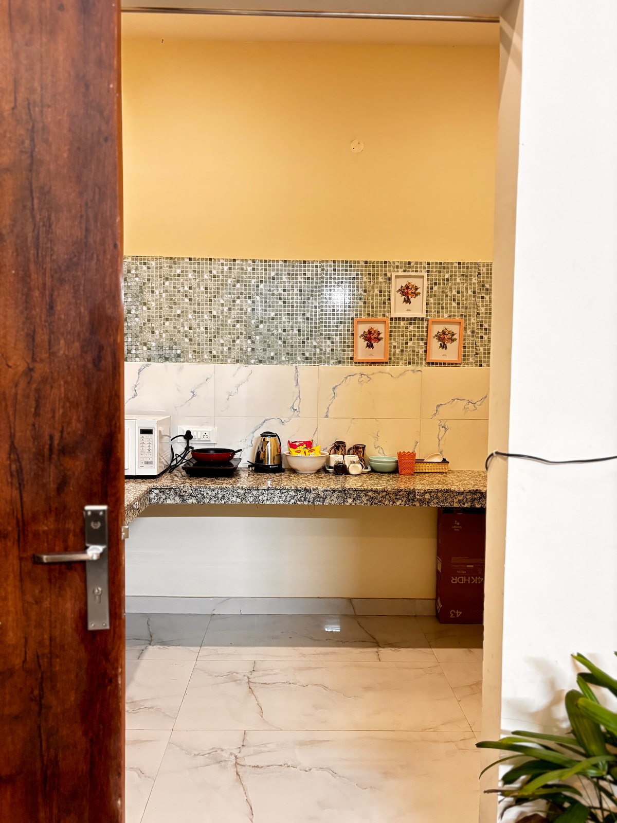 Welcome to a cozy retreat atop a spacious house in the heart of Chandigarh! This private, one-room studio offers a unique rooftop experience with an attached bathroom and a kitchenette. Situated on the 2nd floor, the space is perfect for solo travelers, couples, or business guests seeking comfort and convenience. Our central location makes it easy to explore the best of Chandigarh & the rooftop setting gives the space a serene, airy vibe, perfect for unwinding after a busy day.