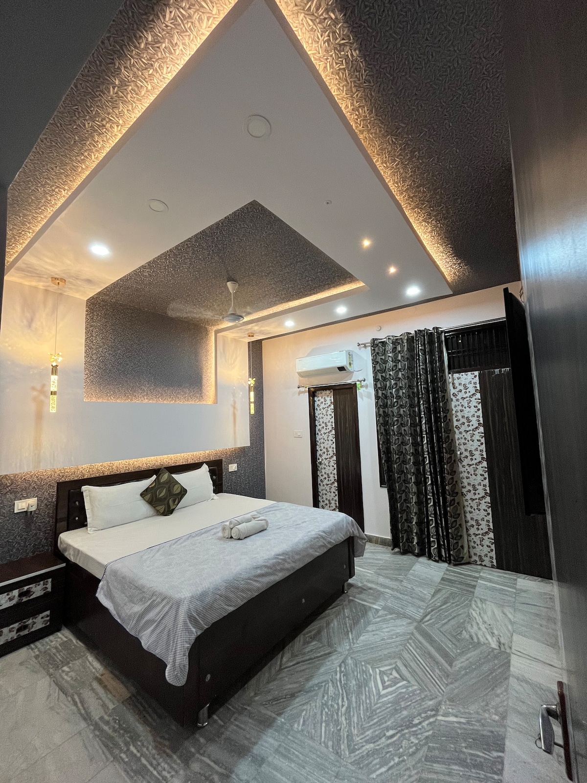 The Yellow House Luxury Studio with Private Home Cinema is located on the ground floor in Gomti Nagar. It blends modern amenities with minimalist decor for a cozy, premium stay. The spacious studio features a floating light-up bed, smart projector with 7ft screen, Bluetooth speakers fully equipped kitchen, and an attached modern bathroom. Ideal for 2–3 guests, whether you’re on a work trip, weekend escape, or romantic getaway. Complete privacy, no shared spaces, and a caretaker available 24x7