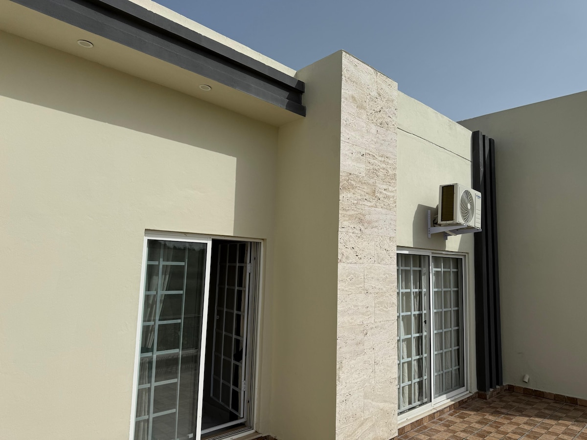 Welcome to our spacious luxury home where you meet luxury mixed with style. Newly built house fully furnished We invite you guys to come book with us for 100% comfort and peace The house is located just 5 mins away from Market 24/7 security available The house consist of 3 bedroom 1st bedroom has king size bed with attached cupboard 2nd bedroom has king size bed with cupboard and 3rd bedroom has 2 single beds 2 bathroom are available kitchen + dining area