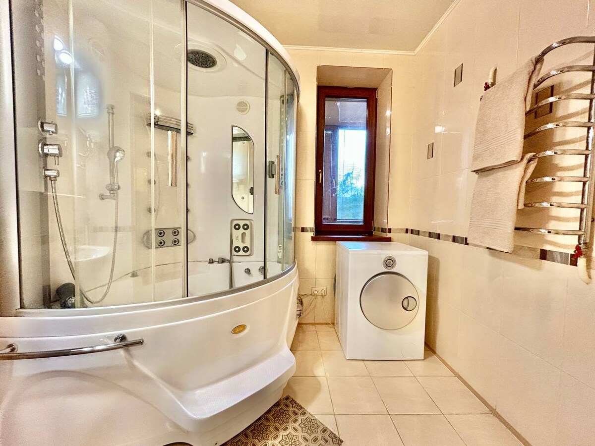 Идеально чистая 3-х комнатная квартира. Рядом с домом продуктовые магазины, аптека, зал, iBOX, лес, автобусная остановка, стоянка для авто бесплатно , гараж за дополнительную плату. В квартире - мебель, джакузи, 4 кондиционера, отопление индивидуальное, фильтра на воду, горячая вода постоянно, Wi-Fi , посудомоечная машина. Ухоженный двор. К ЖД вокзалу - 9 км, аэропорт-12 км, центральный автовокзал -10 км, зоопарк-10 км, бассейн -3 км, трасса Киев-Харьков 1.5 км. Парковая зона -500 м.