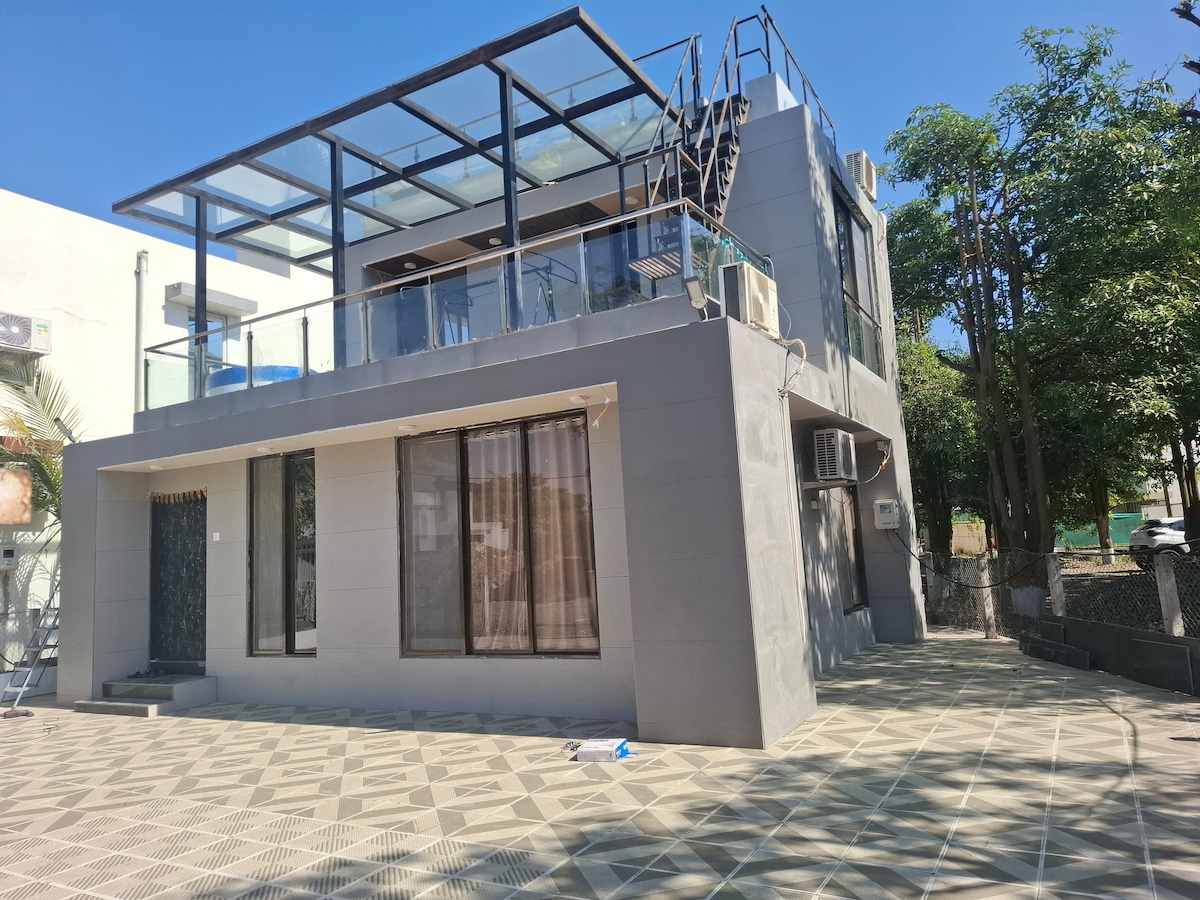Welcome to our Villa – your peaceful escape by the sea! Welcome to our Villa, a charming 3BHK farmhouse just 5 minutes from Bordi Beach. Set amidst greenery, this private retreat features a refreshing swimming pool, lush lawn, and spacious interiors — perfect for families and groups. Enjoy peaceful mornings, beach strolls, and relaxing evenings in a serene, coastal setting. It’s your ideal escape to unwind and create beautiful memories.