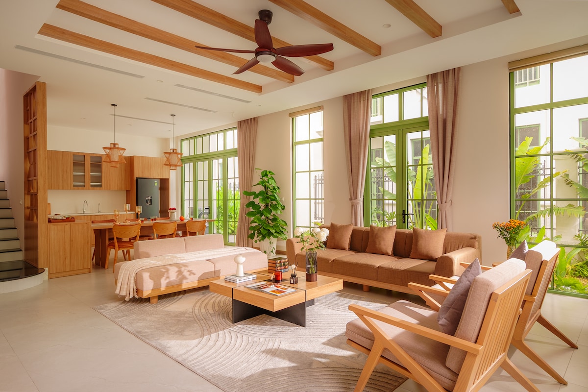 The villa is located in the luxurious Bãi Khem resort 🏖️, featuring 4 spacious bedrooms and modern amenities in the Modern Tropical style. The minimalist and refined design uses natural materials like wood and stone, creating a peaceful atmosphere. The indoor communal swimming pool offers a relaxing and sociable space 🏊♂️ Just 500 meters from the beach, it provides easy access to white sand beach and crystal-clear waters 🌊, blending modern conveniences with a tranquil lifestyle.
