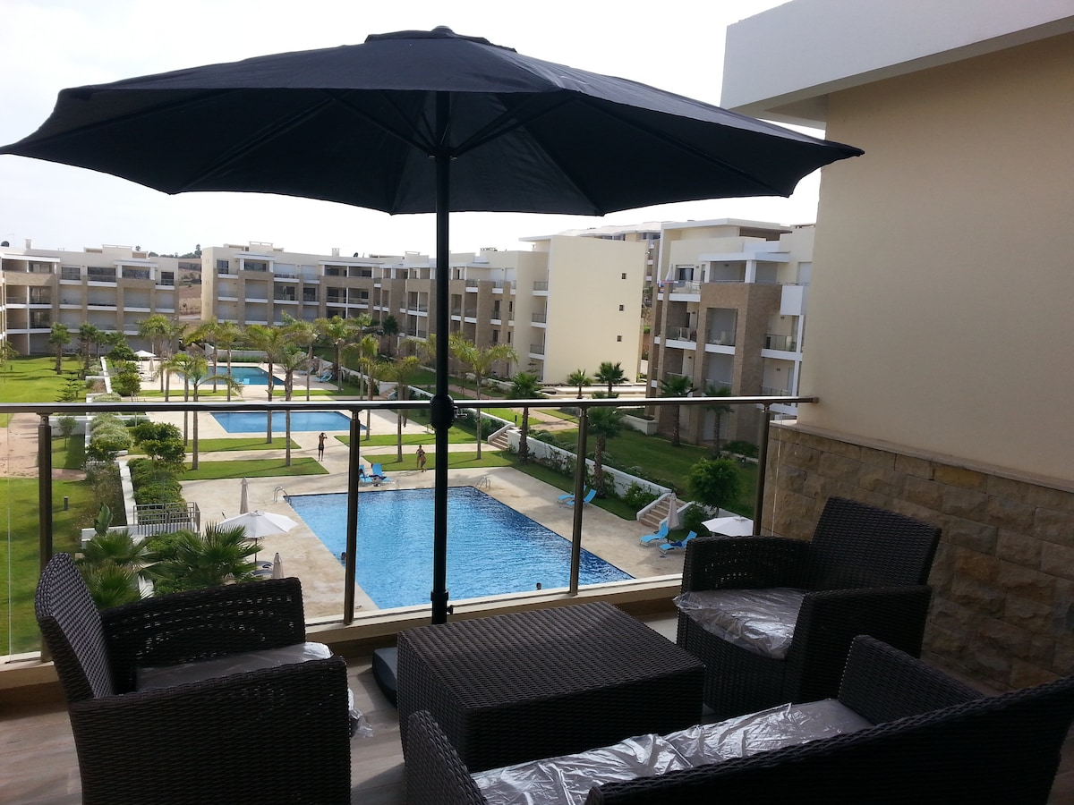 Superbe appartement vue sur mer haut standing, 2eme Étg Immeuble neuf dans une résidence fermé en bord de mer, 2 Cham, Double Salon, Coin feu 2 SDB et une belle terrasse donnant sur la mer. Meublé avec goût et place de parking attribué. Espace jeux pr enfants. Possibilité de surfer toute l année, site et école de surf ( l un des meilleurs spots de la régions ) se trouvant à 5 min du site et golf 18 trois neuf à 5 min du site dispose également d un practice / parcours 18 trous et club House.
