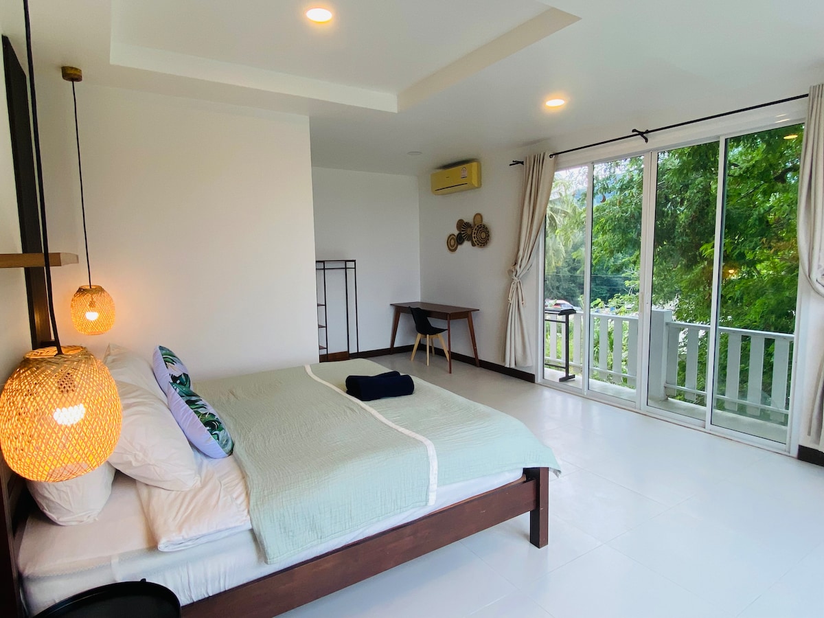 Sitara Home 1B is one of three studio style rooms built together on private land about 100m back from the main road. There are also four houses and two villas on the same land plot. Guests from all of these properties share the onsite gym area. The beach is a five minute walk, 7/11, a few other stores and restaurants are 10 minutes walk. The main town and ferry port of Saladan is 7klm. The studio room is centrally located on the island giving you easy access to all areas.