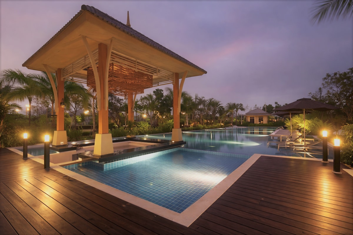 Relax at this peaceful townhome, perfect for staycation and family trips. Be with your love ones here to enjoy both garden greens and the beach! A quiet private place in a well-maintained compound, plus a wide dining area, full kitchen and an open-plan living space with a patio leading to a garden and pool. We also have two bedrooms and ensuite, ensuring privacy and convenience. The beach is also just 5 minutes away, with plenty of restaurants and activities in the area.