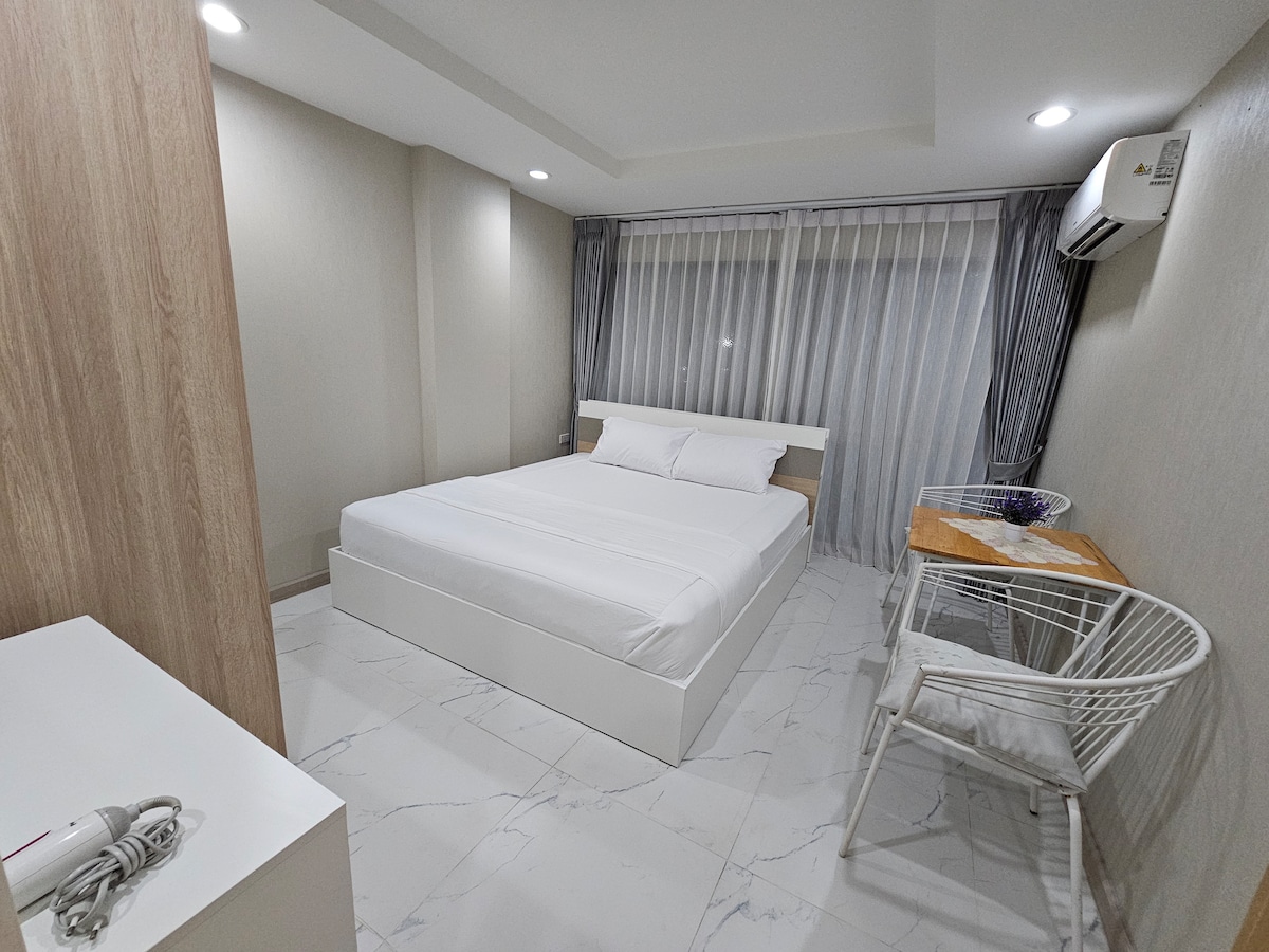 ที่พักสะดวกสบายบนอพาร์ทเม้นท์ชั้น 1 🏢 เช็คอินด้วยระบบล็อคบ็อก สามารถเข้าพักได้ 24 ชั่วโมง ⏰ ห้องกว้างสะอาด มีเตียงคิงไซส์🛏️, เครื่องปรับอากาศ❄️, เครื่องทำน้ำอุ่น🚿 และเฟอร์นิเจอร์พื้นฐาน ตั้งอยู่ในซอยเทพกุญชร 38 (ไม่เกิน 100 เมตร) 📍 มีที่จอดรถด้านหน้าซอย 🚗 พร้อมความเป็นส่วนตัวสูง🔒 Comfortable stay on the 1st floor apartment 🏢 Check-in via lockbox, 24-hour access ⏰ Spacious, clean room with a king-size bed 🛏️, A/C ❄️, hot shower 🚿, and basic furniture 🪑 Located in Thep Kun Chon 38 Alley (under 100m) Parking available in front with high privacy 🚗🔒