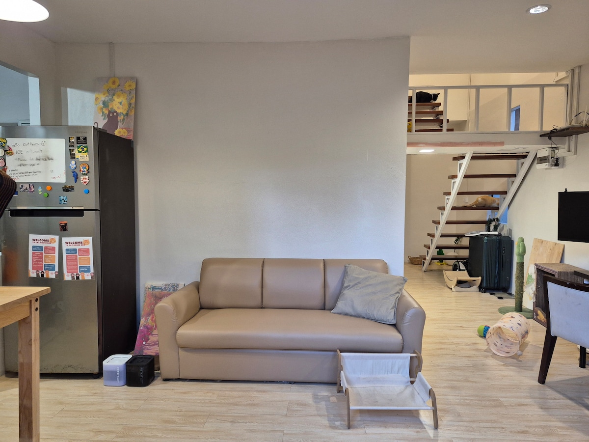 是隆区猫屋的舒适客房,靠近轻轨站