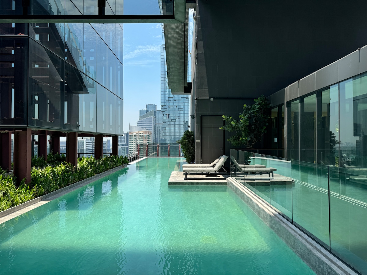 Our spacious (68 sq.m.) room is newly renovated and comes with all the amenities you need. Situated in the heart of Bangkok amidst upscale hotels, it offers easy access to Thailand's top attractions. Just a short 6 mins walk from Sapan Taksin SkyTrain Station, 1 min walk to convenient store, 4 mins walk to department store, our location is incredibly convenient, with renowned dining options, the bustling business district, and popular tourist spots nearby. *There is NO pool and gym for guest*
