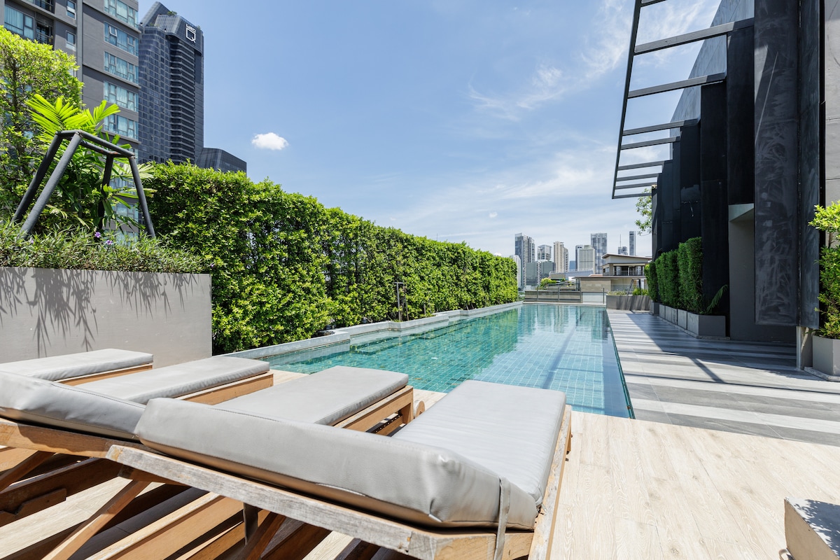时尚的1间卧室,漂亮的游泳池,BTS Asok,素坤逸