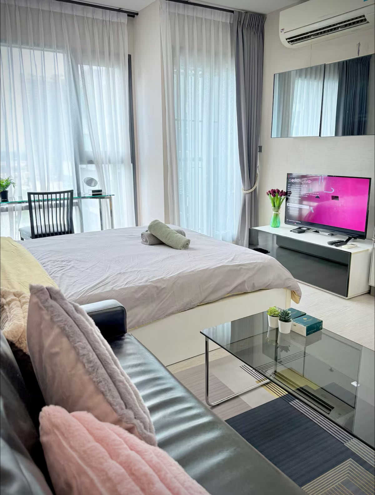 A fully furnished condo with 1 bed room kitchen, and balcony with nice view. Facilities. Security 24/7, Indoor Gym, Swimming pool, Sauna, Rooftop garden Amenities Located near BTS Ekkamai & Phrakanong. Connecting with Sukhumvit road, with easy access the city center and night life spots like Thonglor, Phrom phong. Close to MRT Queen Sirikit for riverside trips. And surrounding with divers dinning options and top malls like Gateway Ekkamai, EmSphere, Terminal21, One Bangkok.