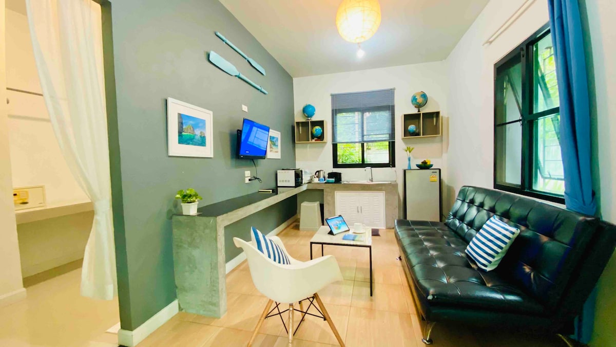The Relax @ Krabi 4 Home & Gallery is a private house adjoining Art Gallery. Located in residence and small hotel area of Aonang. Only 1 km to Noppharat Thara Beach, Aonang landmark night market, Aonang main pier. 2 km to center of Aonang district. 200 meters to Supermarket, 7-11, restaurant, There are service of taxi and food delivery app in this area Transportation easy to go to everywhere such as Krabi airport, Bus station, Krabitown, Aonang pier to every islands tour, Lanta,Phi phi ,Phuket