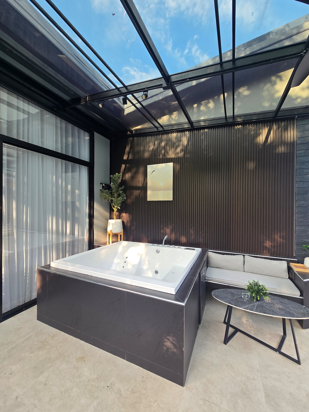 Welcome to our peaceful home in Mai Khao 🏡 — perfect for families, couples, or small groups, just 10 minutes from Phuket International Airport. 🌿 Escape the noise 🌿 — unwind in the jacuzzi, relax in the massage chair, play the piano 🎹, or cook in the fully equipped kitchen ✨ Bright open-plan living & dining area, 2–3 bedrooms, and 2 bathrooms — ideal for holidays or workation in a secure community. Private terrace with jacuzzi, free Wi-Fi, and on-site parking 🚗 included.