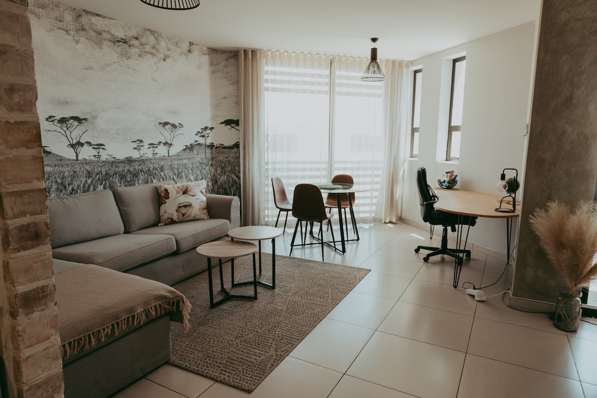 Looking for something upmarket, unique, and stylish? Enjoy a memorable experience at this centrally-located suite, walking distance (+-2 minutes) from Grove Mall and Lady Pohamba Private Hospital. Sister AirBnB Apartments: - NAMIB: Luxury Apartment near Grove Mall & Hospital - OCEAN: Luxury Apartment near Grove Mall & Hospital