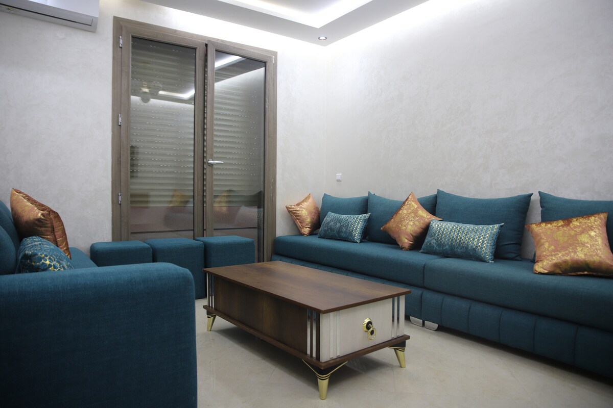 Un logement élégant et moderne au centre de la ville , parfait pour un séjour urbain alliant confort et accessibilité. à proximité de l’Hôtel Golden Tulip Farah, de la clinique internationale Agdital et de l’ENSA. Il offre une ambiance décontractée, un extérieur lumineux et un design contemporain. ✨ Points clés : - Emplacement stratégique en centre-ville. - À 2 km du complexe sportif du Phosphate et de la gare.