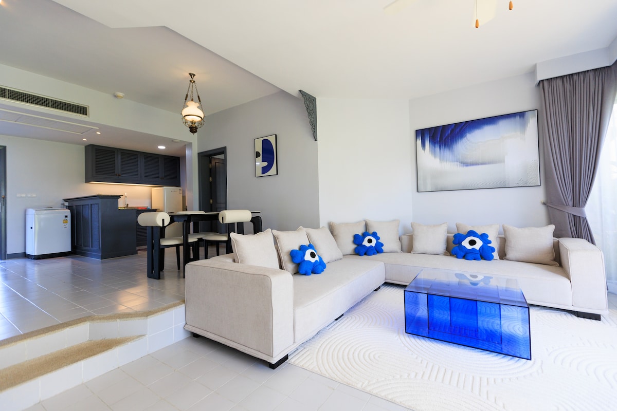 Absolute beachfront location , beautiful modern design with Thai details, comfortable bedding and living, breathtaking amazing views from floor to ceiling glass windows , friendly staff . The best luxury is privacy , tranquility and relaxation! Also as being a small Boutique building it is a safe place and easy to be under the new social distancing rules that are needed!