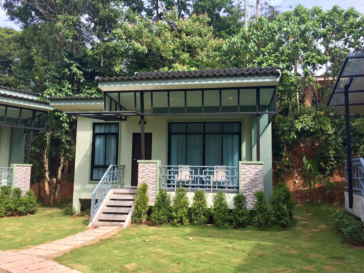 5o m2 two bed room bungalow The Bungalows is located on the upper side from the main road in Khuk kak. The bungalows are approximately 3 km from the beach. It is located in a peaceful and quite area, close to the river and you will be viewing of the jungle from the bungalows porch as you wake up in the morning. All bungalows have AC in the bed room, hot water, fans, kitchen & WiFi by fiber.