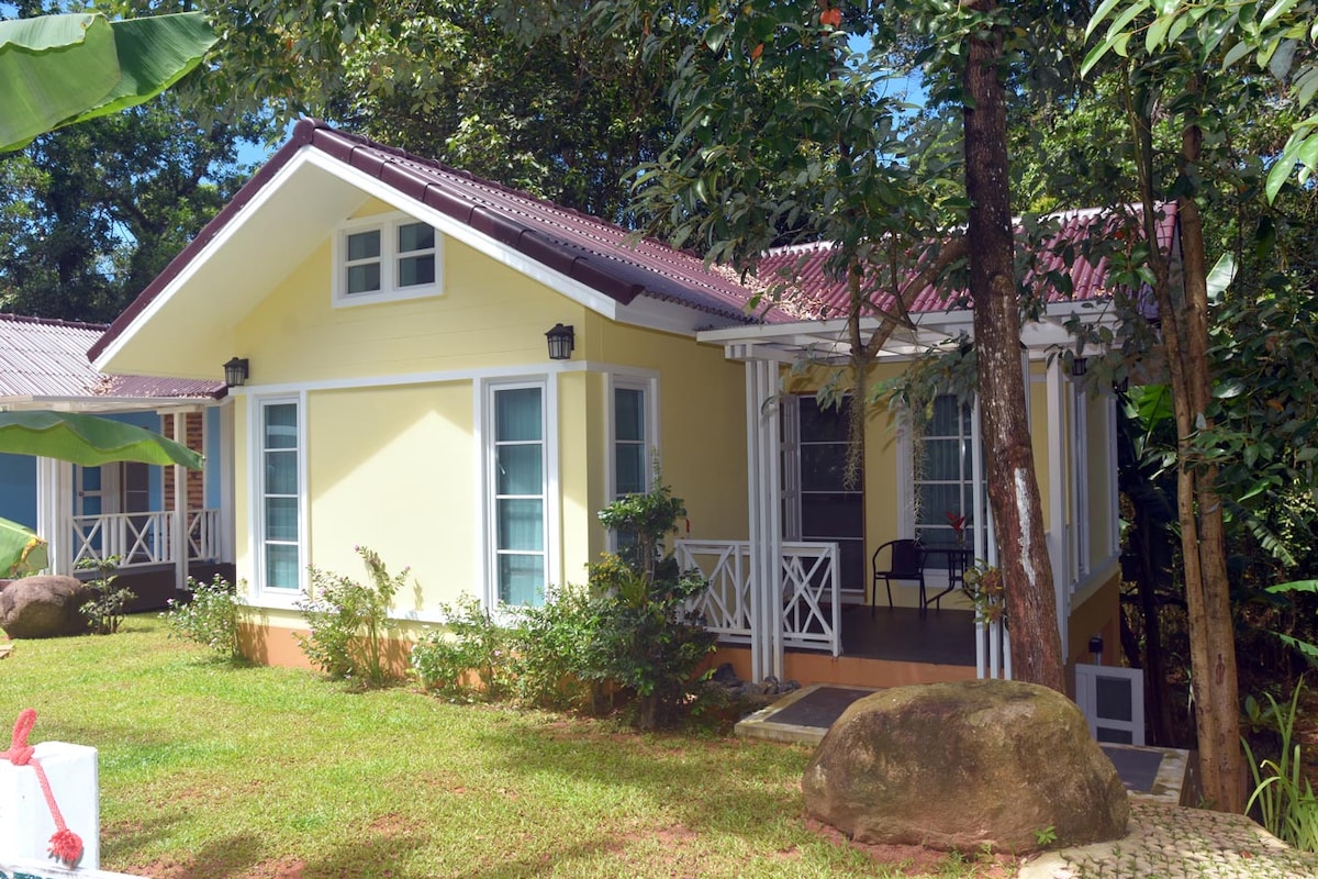 This wonderful holiday home has stunning natural views and is surrounded by a coconut orchard and a tropical garden. A secluded haven for a couple or family. Situated about a 5-minute walk from Mai Khao Beach, it is fully equipped with a kitchenette and high-speed wifi for entertainment and working. Free bicycles are provided for all guests to use to explore the area. The holiday home is a place to refresh your mind and body and enjoy the quiet sounds of nature.