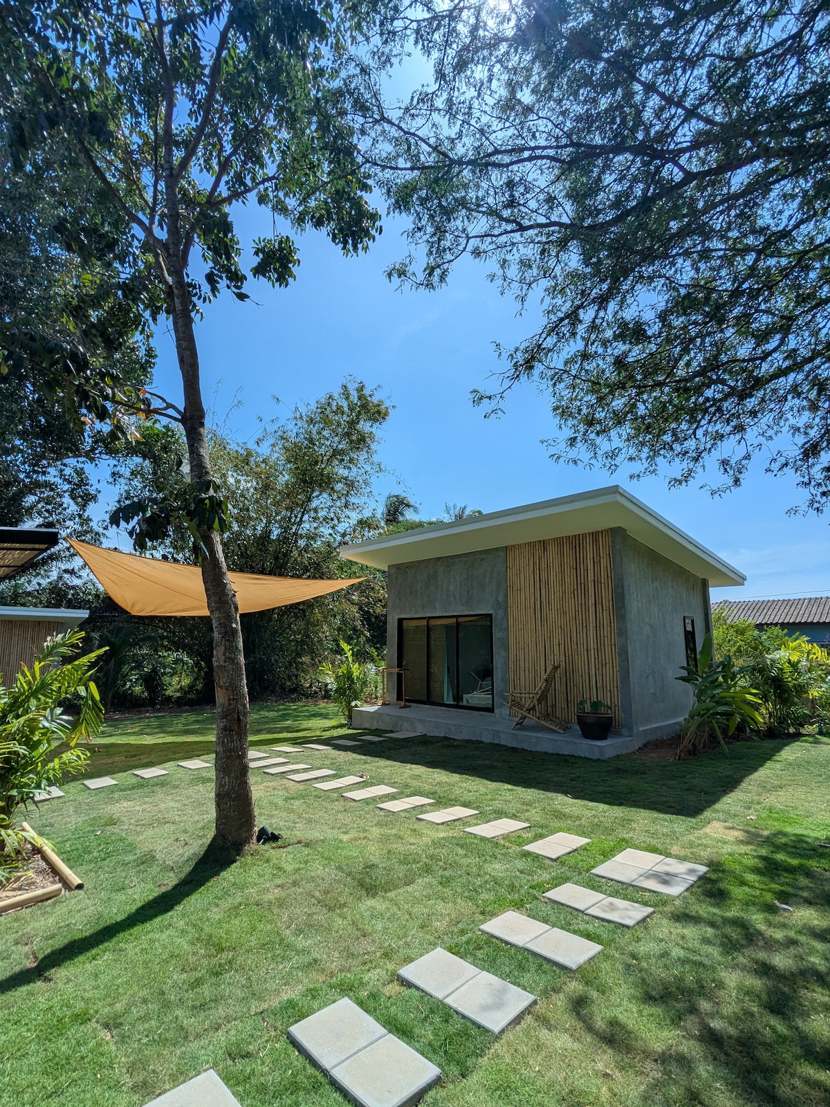 Surrounded by greenery the Bangalow was designed with simplicity and sustainability in mind. Nearly everything inside has been made in Thailand using natural, locally sourced materials, with minimal plastic and a strong connection to local businesses. We aimed to create a calm, grounded space in a neighbourhood we truly love - quiet, authentic, and full of understated beauty. We’re excited to share it with guests who want to slow down, breathe, and experience a more peaceful side of Thailand.