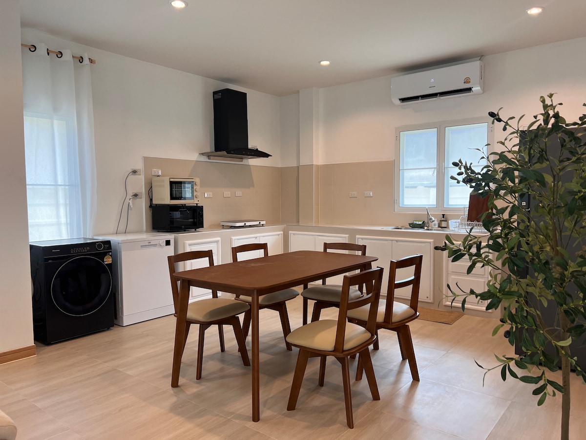 Koppla av i ett öppet och fridfullt hus med närhet till fina utflykter! 4,5 km till närmsta strand (Khuk Khak beach) 650 m till: * morgon matmarknad * 7eleven * frisör med mera
