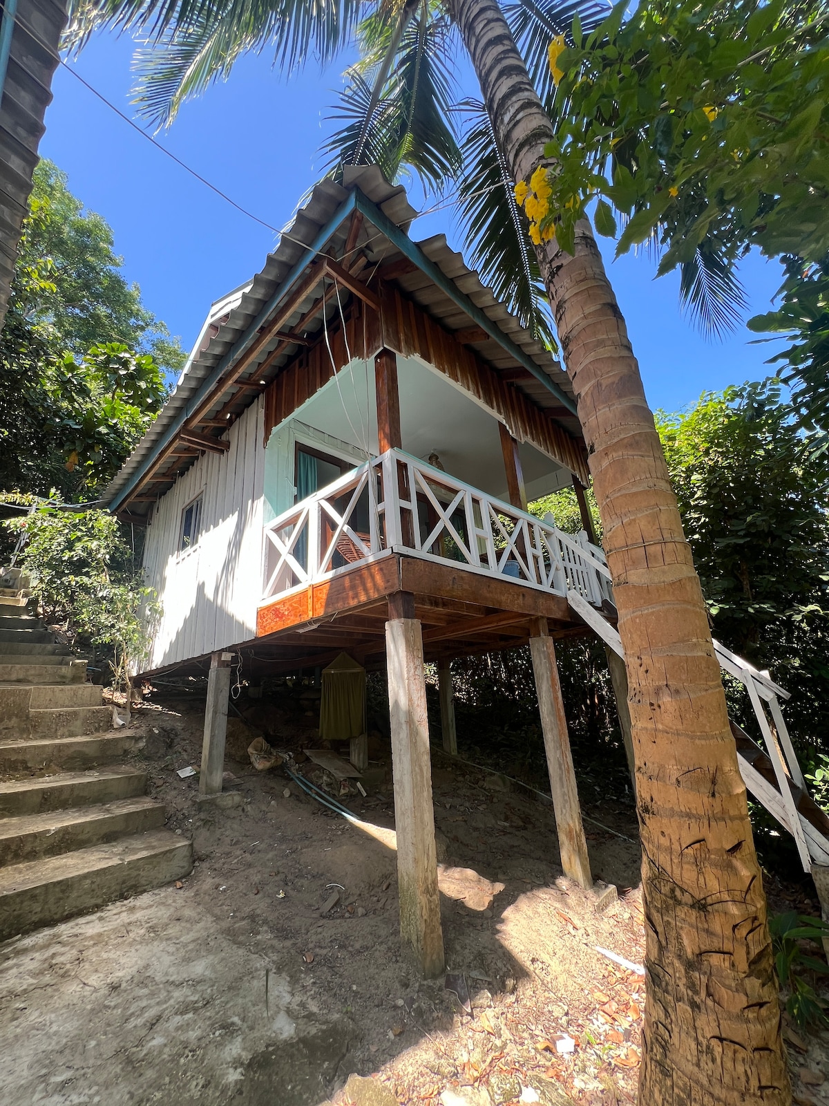 Our bungalows 2 min. walk to white sand beaches, also just right infront of our balcony we have beautiful coral reef . we run a restaurant where we serve breakfast- food- drinks all day. And other accomodation options too . We are in koh rong island for 10 years so pls feel free to ask about tips . Theres Ac and Fan in the room. Beautiful quite location, close everywhere. We can arrange tuktuk or motorbike for you.