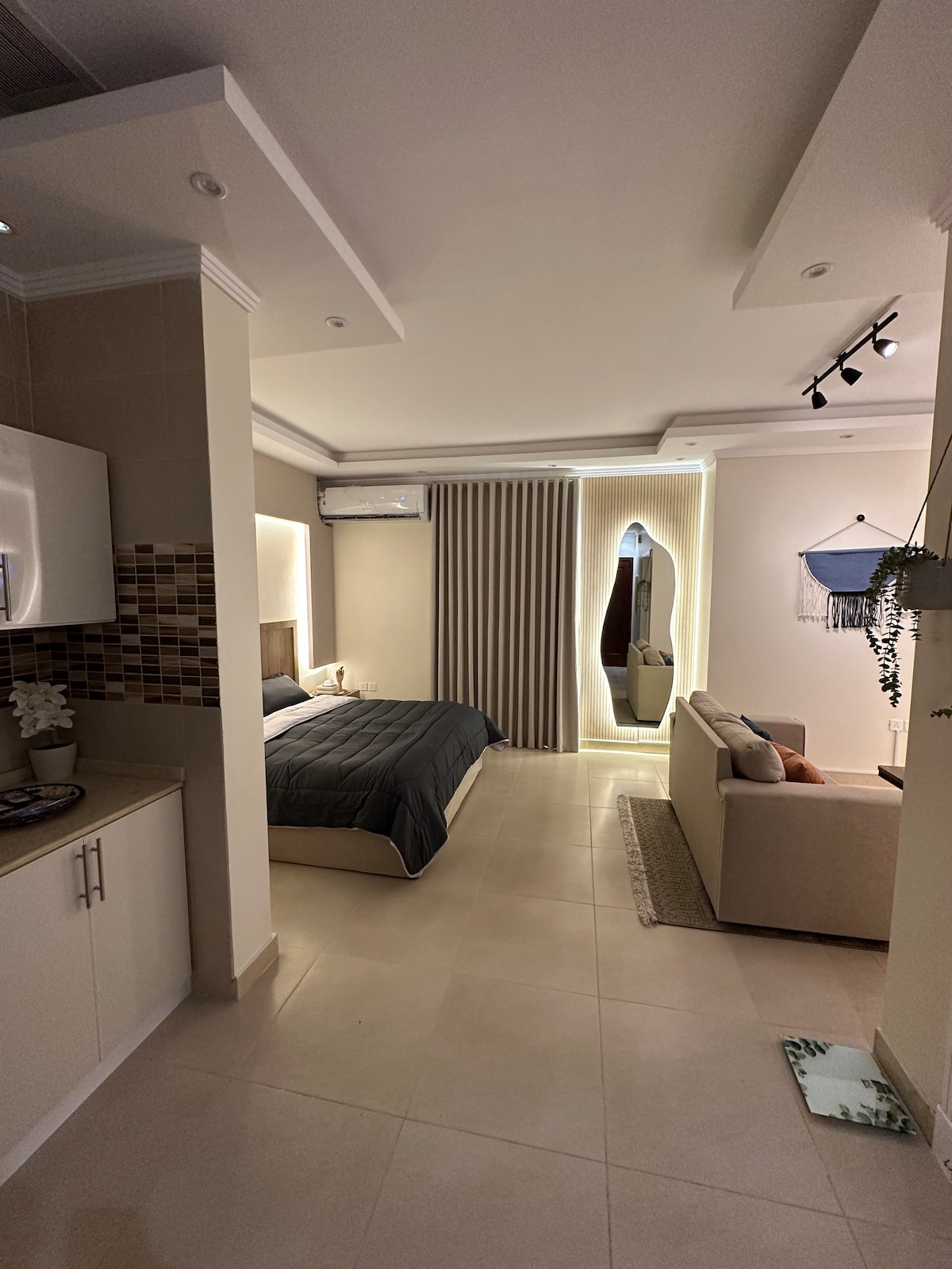 Elegant studio consisting of a bedroom, a bathroom and a living room containing: - 75 inch smart TV with the following (YouTube, Netflix) - Microwave, refrigerator, kettle, steam iron, air freshener, Wi-Fi. Close to all services and easy to reach: TeamLab 3 min Al-Balad 5 min Al-Hamra Corniche 7 min The port 8 min King Abdulaziz University 10 min Abdullah Al-Faisal Stadium 12 min Al-Haramain Train 15 min Airport 25 min ✅ Self-check-in ✅ Available (towel, shampoo, shower gel, soap, slippers)
