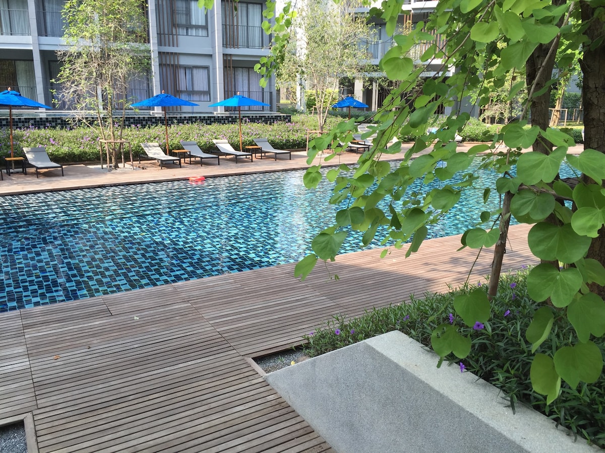 Self check- in. Dream living on your vacation stay at The Sunshine Khaoyai with panoramic view from my balcony on a high floor. You are surrounded by undulating hills and sprawling trees with a peaceful atmosphere. The Apartment is secluded and on a peaceful and quiet side of the building. Comfortable bed, good water pressure, high-speed internet. You can enjoy all the facilities such as a swimming pool, fitness area, open plan lobby, EscapeYard park, Green Oak bistro and Rooftop garden.