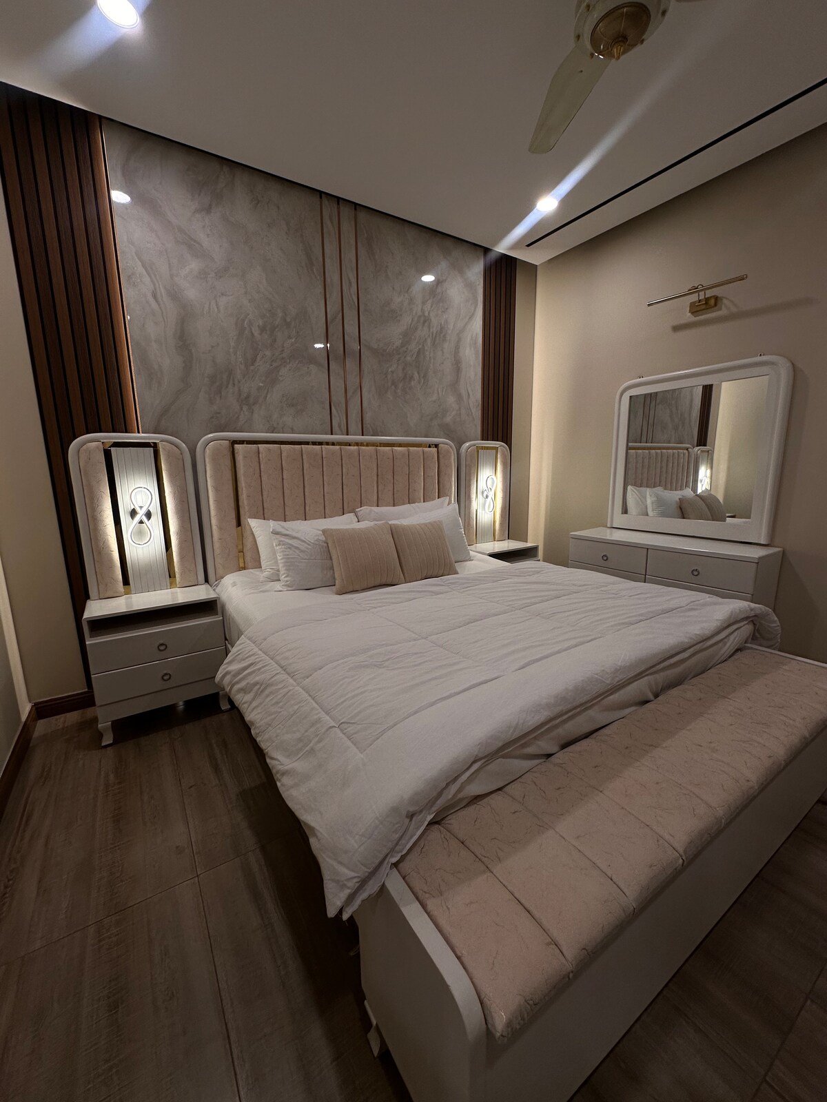 When you walk in this appartment the first reaction you will have is that its a beautiful,elegant and clean appartment. Family environment available. The building is surrounded with a beautiful park aswell. -15 minutes from airport 🛫 -2 mins from( Tandoori restaurant, chai que) - 2 minutes from Haneef medical hospital 🏥 - basement of the building has Mart - Helper also available who will service and clean your room, deliver you anything you need, take your clothes to laundry etc.