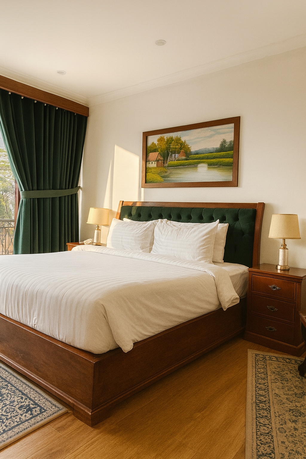 Step into refined comfort. Our Boutique Luxe Suite blends soft aesthetics, warm lighting, and timeless design — all at Kashmir Point, right on Main Bank Road. Enjoy 24/7 housekeeping, secure parking, a rooftop live BBQ, and an intimate private cinema under the stars. With a restaurant on the top floor, every moment feels curated, cozy, and beautifully luxurious.