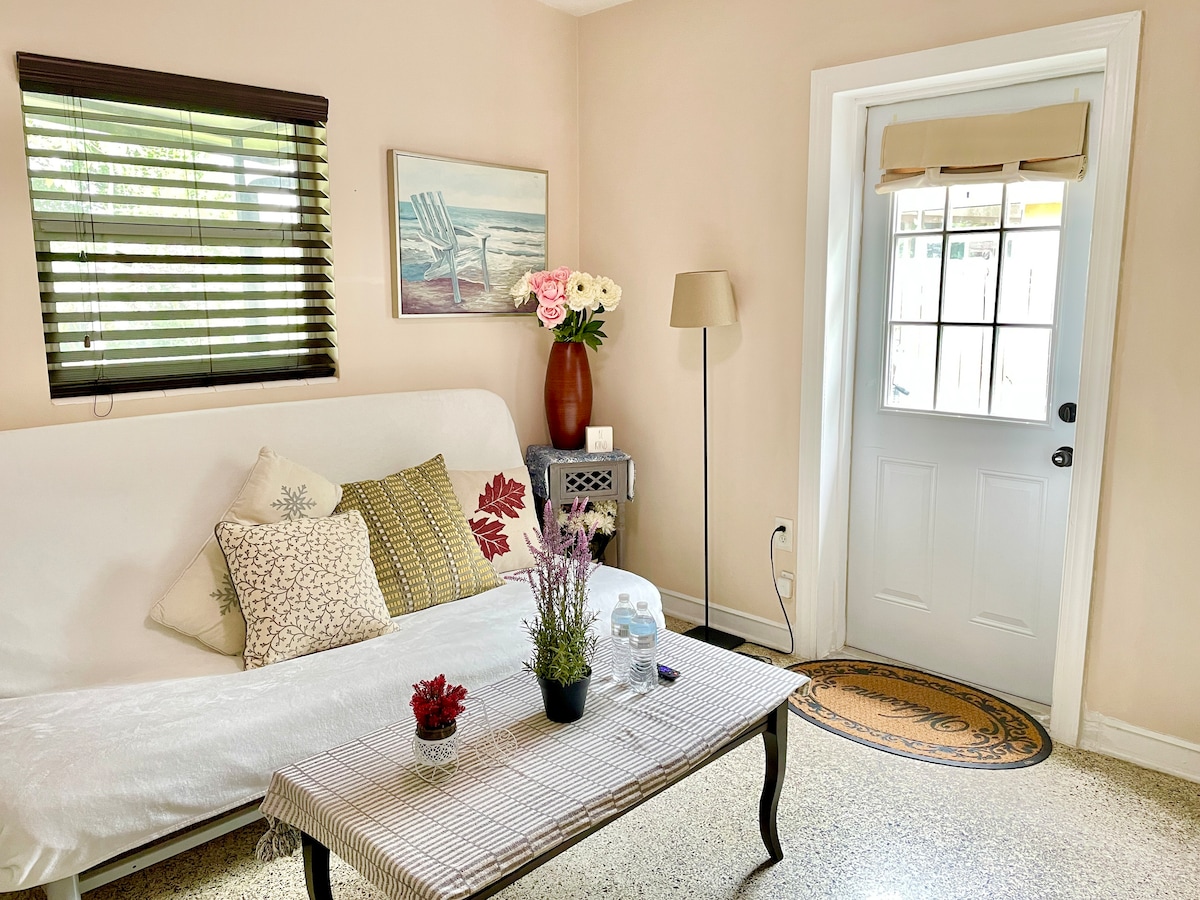 Experience the best of Orlando from this private 1BR getaway in the heart of downtown! 🌆 Walk to top restaurants, bars, and Lake Eola — yet enjoy peace and privacy tucked on a quiet street. ☕ Complimentary coffee, 🚗 free private parking (rare downtown!), ⚡ fast Wi-Fi, 💻 remote work desk, and a cozy KING SIZE bed make it ideal for business or leisure stays. Perfect blend of comfort, convenience, and location — everything you need just steps away!