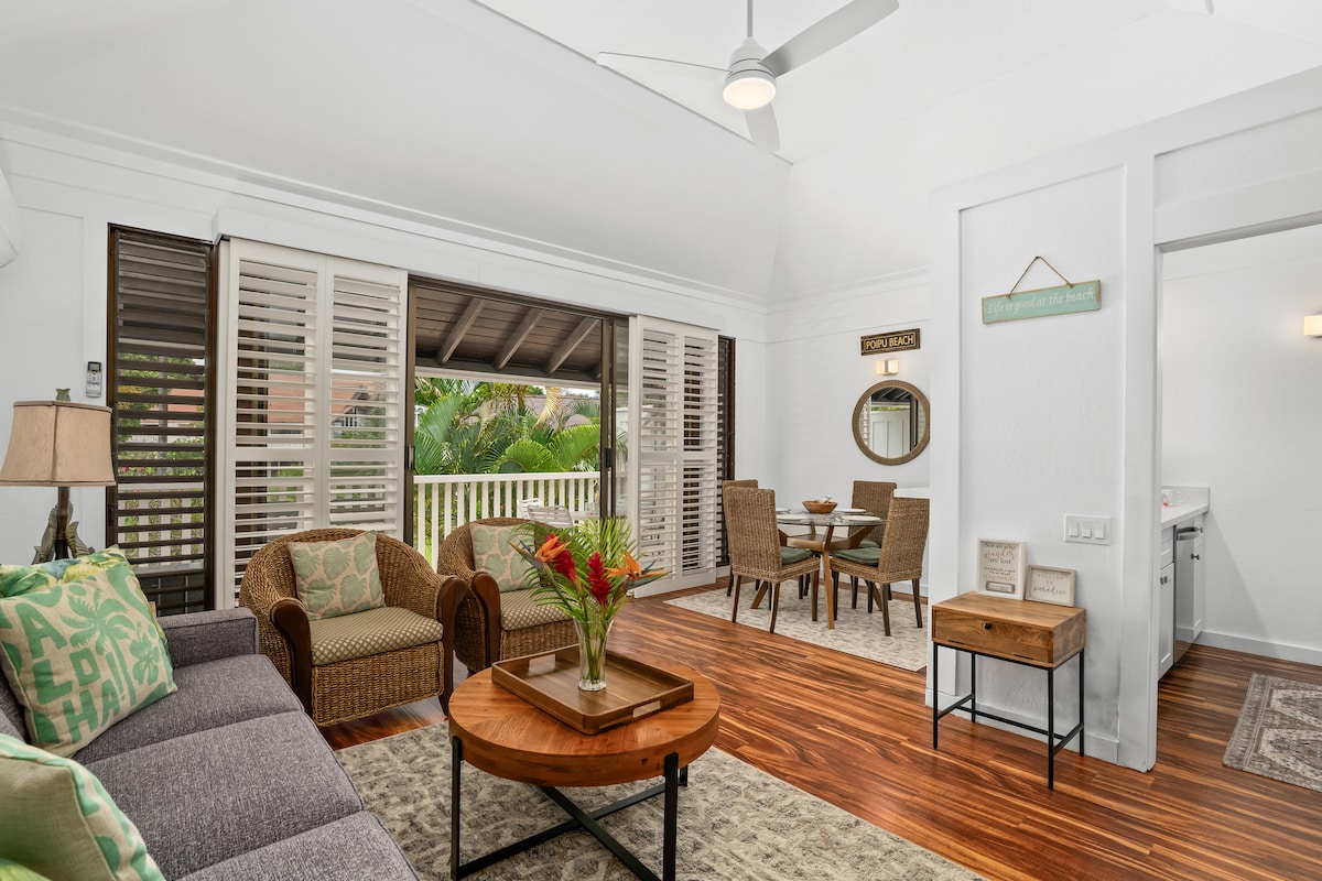 时尚的Poipu 2卧/2卫,配备空调,距离海滩仅几步之遥