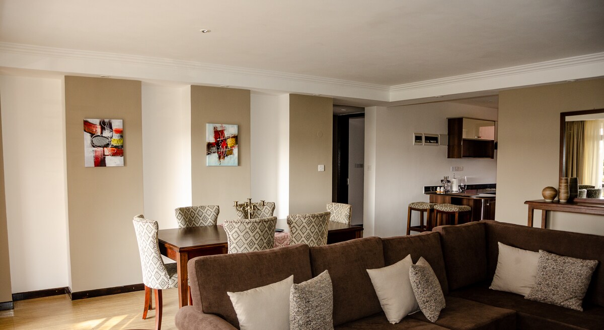 Spoil yourself at our luxurious fully Serviced Apartment in upmarket area of Runda. Next to the US Embassy and UN Complex. Shop at the prestigious Village Market or the New Two Rivers Mall. For outdoor lovers, you can bike or walk next door at the Karura Forest and explore Paradise lost. See the Big five at the Nairobi National Park and soak up some history at the National Museum. Plunge yourself into our pool or spoil yourself in our spa. The fitness buff we have a fully equipped gym.