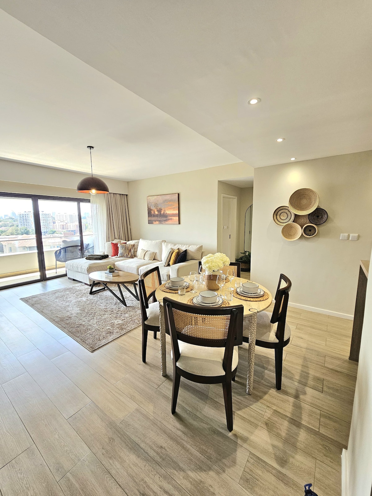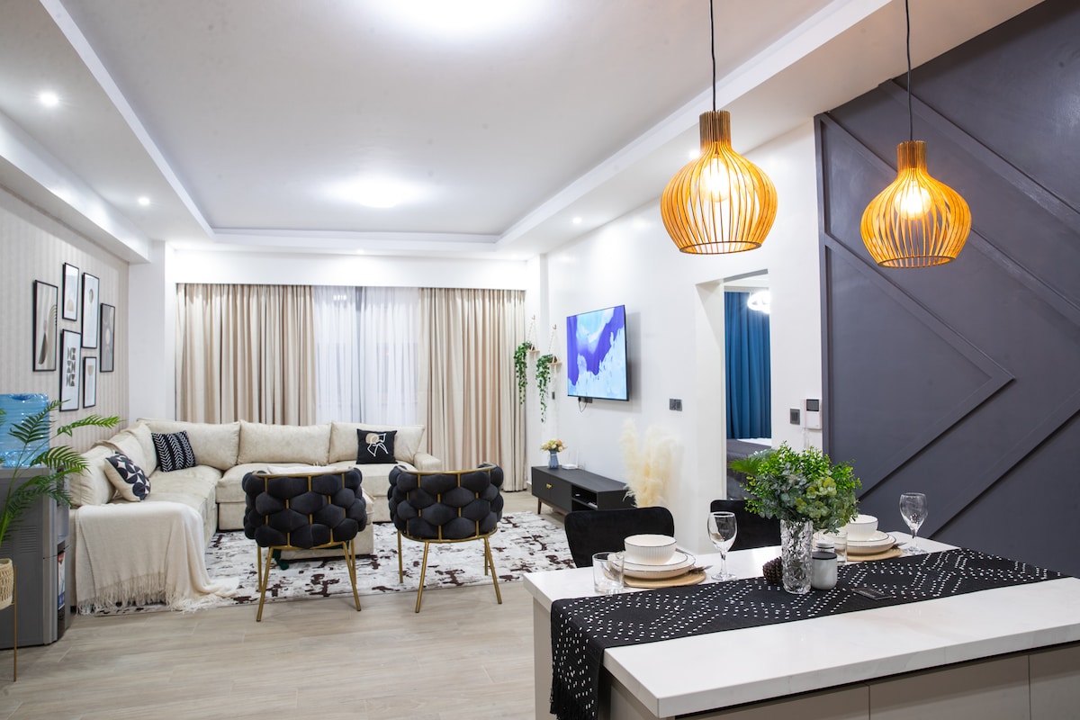 Welcome to this serene 2-bedroom apartment that offers the perfect balance of comfort and calm, tucked within a secure neighborhood only 50 minutes from the airport and 45 minutes from the city center. Unwind or work with ease, enjoy scenic walking trails, a refreshing pool, a modern gym, reliable backup power, and a family-friendly playground. A baby cot and study desk are available upon request, making it ideal for both families and business travelers.