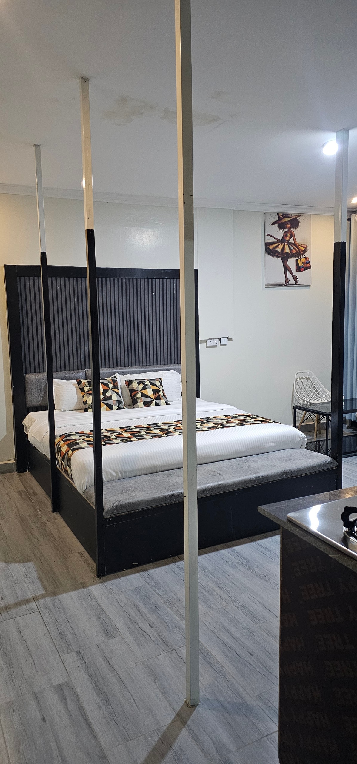 Indulge in our spacious King Suite at Light Villas Gigiri. Featuring modern décor, a plush king-size bed, and a dedicated work area. Enjoy natural light and city views. Amenities include high-speed Wi-Fi, smart TV, and an en-suite bathroom with premium toiletries. Access our gym, sauna, steam room, jacuzzi, and conference facilities. Located in Nairobi's prestigious Gigiri district, near the United Nations Office and Village Market.