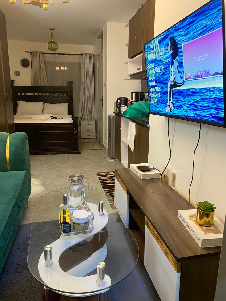 This spacious Wamara HomeStays studio is one hour to Nairobi National Park & in safe Kahawa Sukari. Has a queen bed, Wi-Fi, smart TV, Netflix, a well equipped kitchenette & a spacious bathroom. It overlooks the front yard; with an event room & a babycot available on request. Enjoy serenity, evening walks, visit a great gym & swimming pool next door. Cook or order food online or dine out in nearby major Malls. A personal welcome on arrival. Beyond 1 guest, there is an extra charge.