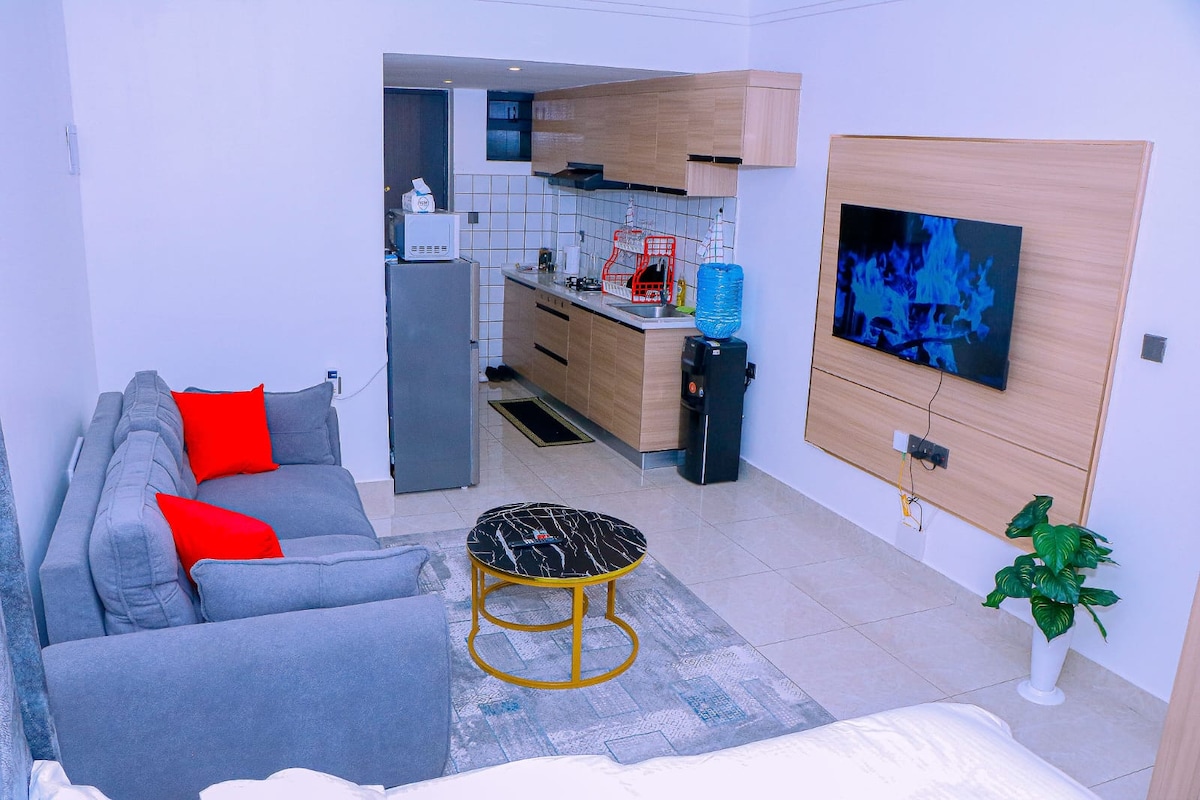 Take it easy at this unique and tranquil getaway studio apartment available ,equipped with modern amenities. Just 2.5Km from Thika road By pass Exit 11 Ruiru and just 25KM to JKIA and 1.5KM to the newly constructed Kenyatta University Hospital , and just 800meters to Tatu City Available for both long and Short Term stay. Amenities: Free parking Unlimited WiFi Security Cameras Tv (55 inch Samsung Qled Slim TV) Sound system (JBL 9.1 Sound-bar) Extreme Bass Netflix , YouTube Coffee Maker