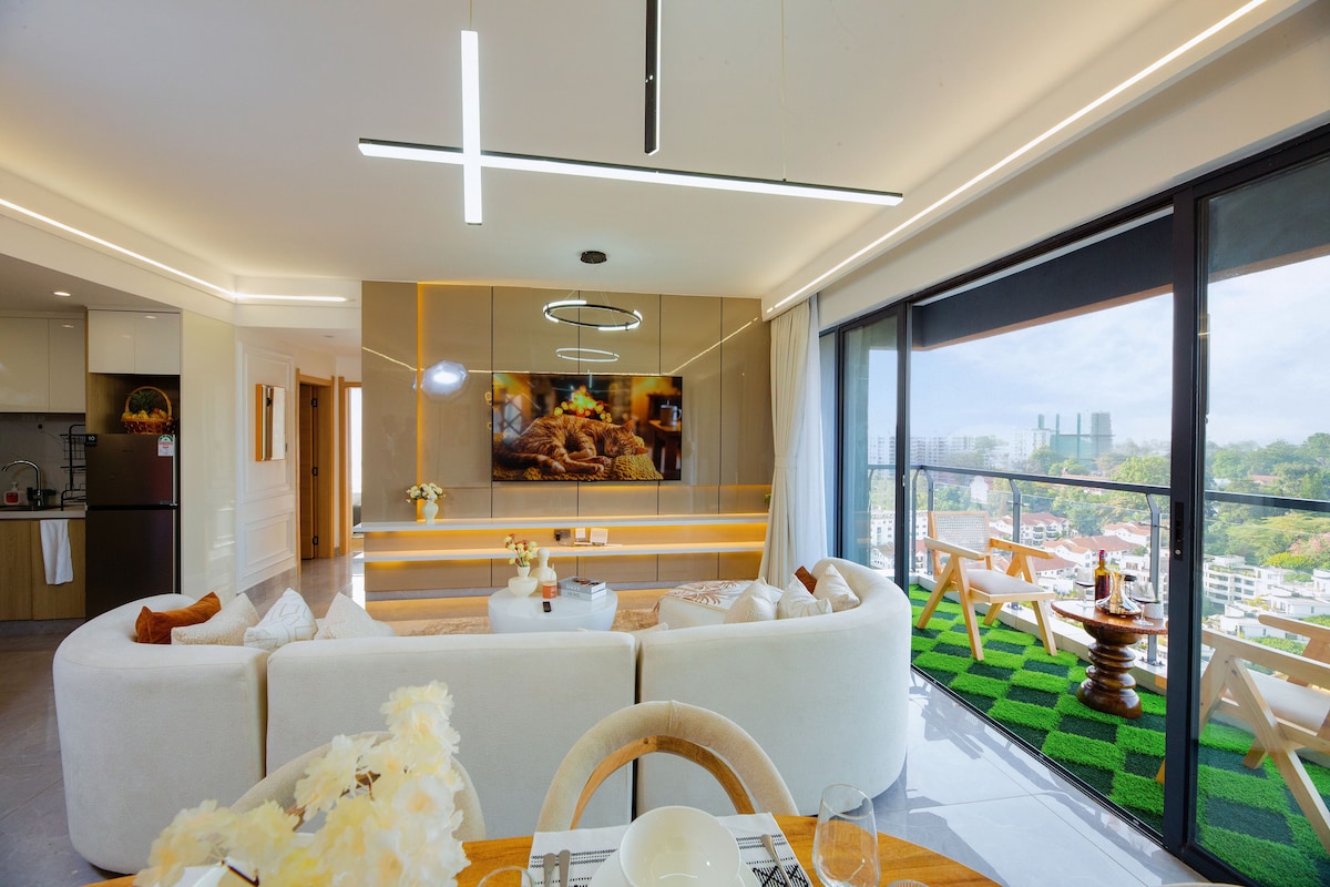 This stylish modern two-bedroom apartment is perfectly located in the heart of Lavington, just a short walk from the Junction Mall. Designed for both business and leisure travelers, this elegant city retreat offers the ideal balance of comfort, convenience, and breathtaking views. One of the apartment’s most striking features is its panoramic scenery. The living room and private balcony provide sweeping skyline views across Lavington, Kileleshwa, and Kilimani.