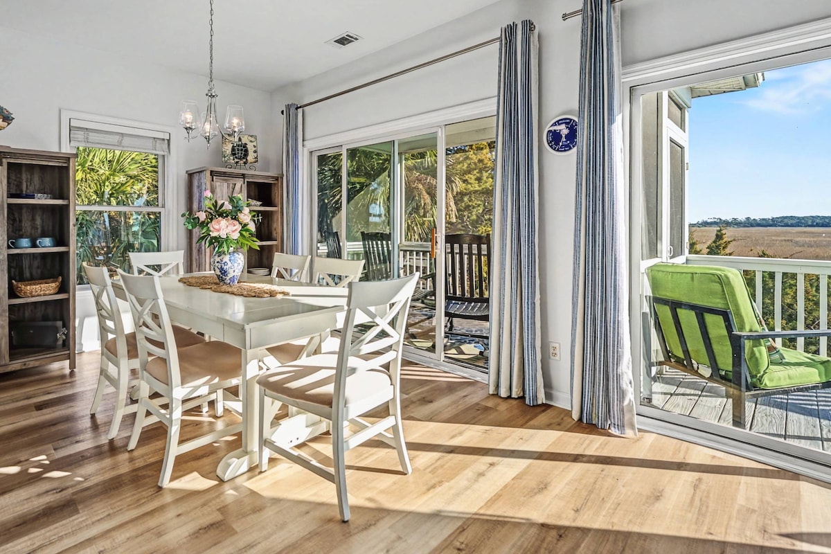 This home is NOT a "17-min walk to the beach" like the Airbnb system automatically states. If you're in the house, you're ON THE BEACH, listening to the waves crashing in front of you...greeted by long driveway bordered with towering palms, this property features a ton of outdoor entertaining space, including double porches & a rooftop terrace with panoramic views of ocean & marsh. Home is perfect for large gatherings. Come see why this beachfront gem has been a favorite on The Edge of America!