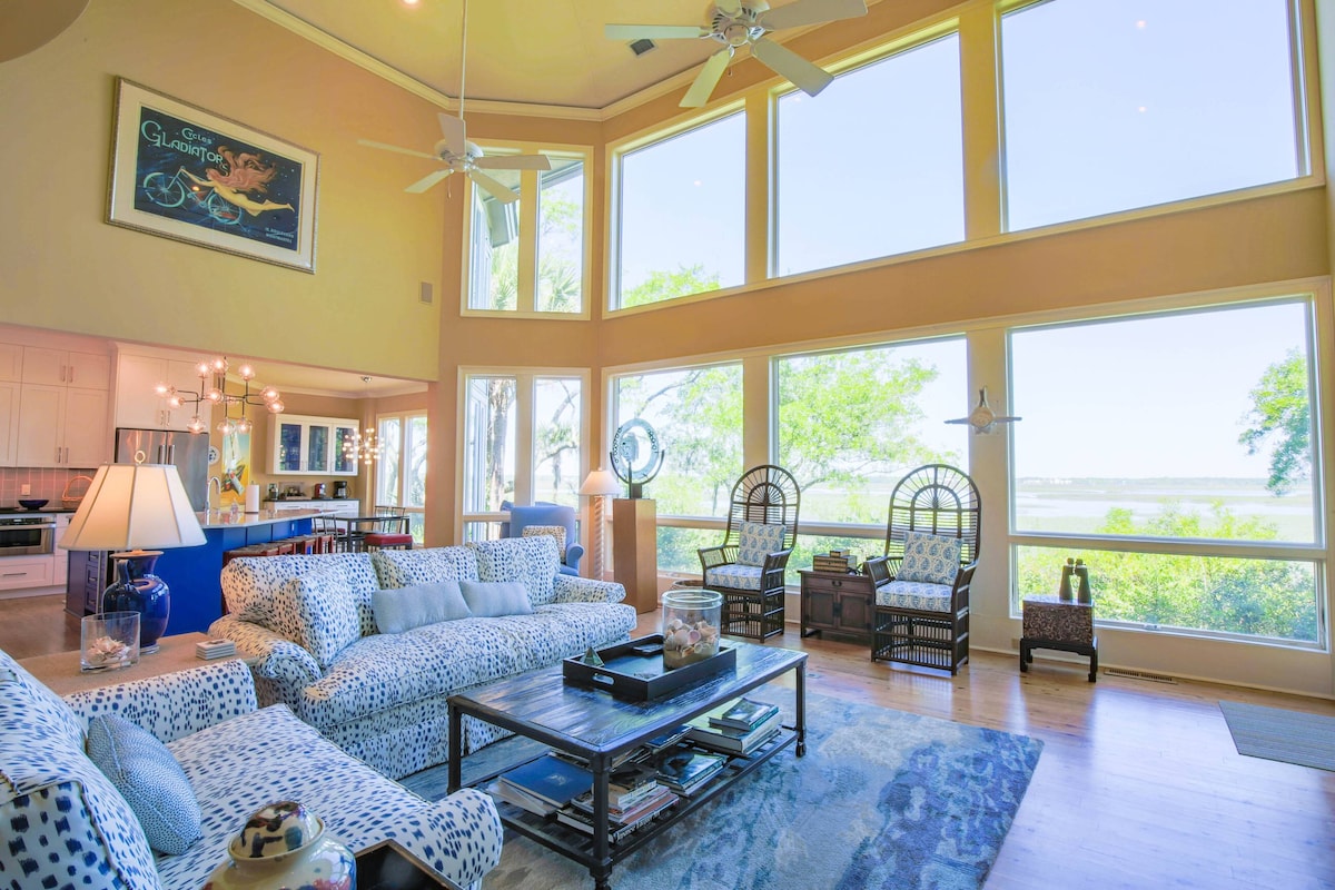 "The most unique and relaxing place to enjoy the tranquility and experience of Edisto. We did not want to leave" - Sambo Nestled atop 360-degree marsh views, you'll be immersed in the exotic natural beauty and wildlife of the Edisto sea island. Hear the waves crashing at the beach from the front porch and watch the marsh tides rise and fall from your choice of the many porches. "Nature with luxury.. our group loved floating from the house out to the inlet for private beach days" - JP