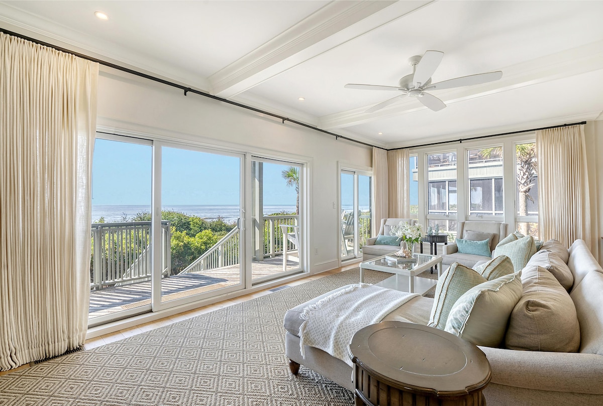 This oceanfront villa is the ideal coastal getaway thanks to its panoramic views of the Atlantic and sweeping vista of Kiawah's 10-miles of pristine beaches. Wake up to gorgeous sunsets and direct ocean views from nearly every room of this 3BR/3 Bath Premier Penthouse villa. The location of this villa is another one of its best features - located in East Beach Village, just steps from the beach and a short stroll or bike ride to the Sanctuary Hotel, Night Heron Park, golf, tennis, and more.