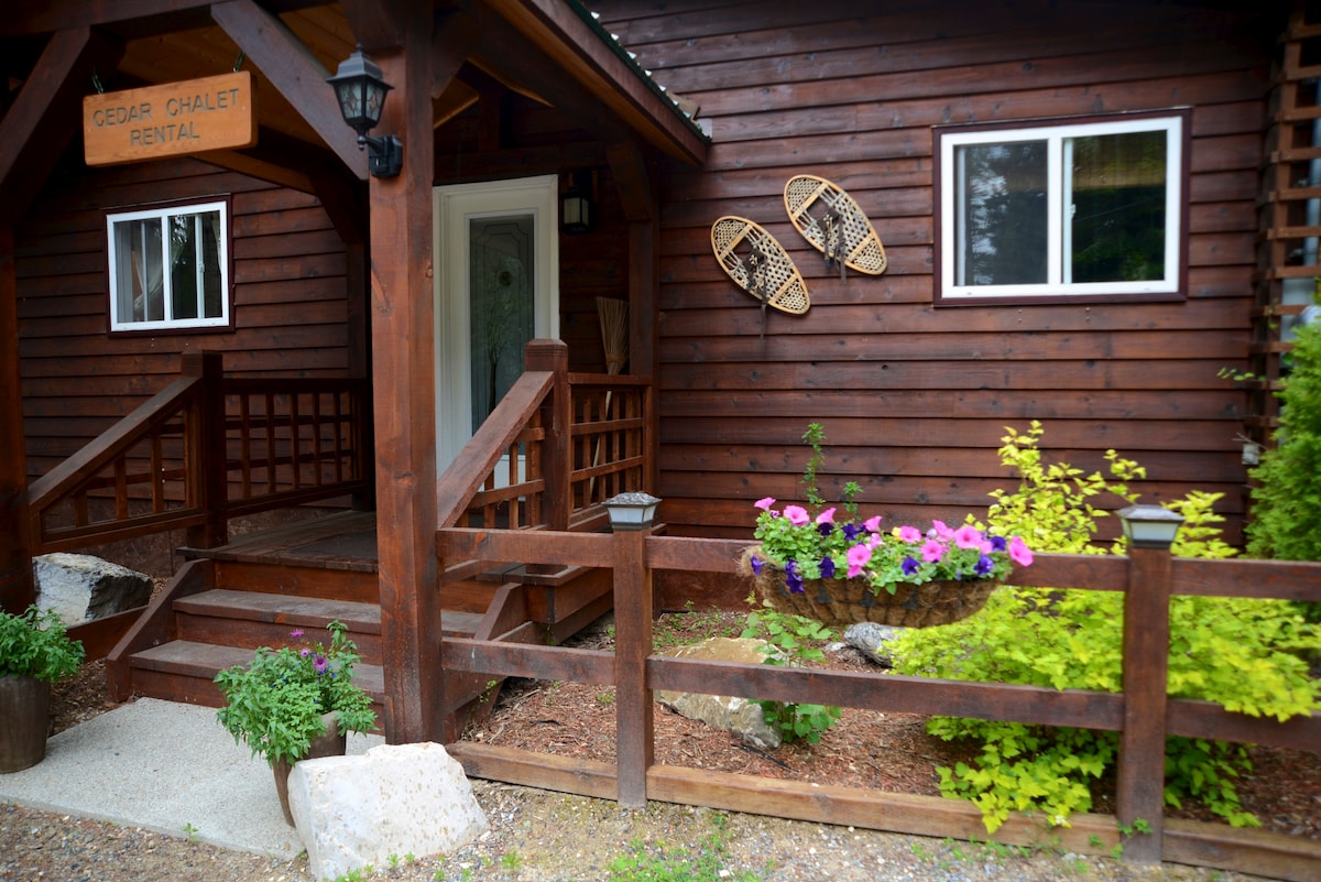 Private drive, private yard and a private mountain heritage cabin 8 km south of Golden, almost like you are in a national park. One bedroom cabin with full kitchen, Cable TV, Internet and WIFI. Lots of parking. Cabin is 650 sq ft. Minutes from Kicking Horse Mountain Resort and Golden Skybridge. Gorgeous views of both the Purcell Mountains and Mount 7. Well treed, peaceful location with occasional wildlife.