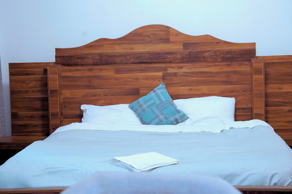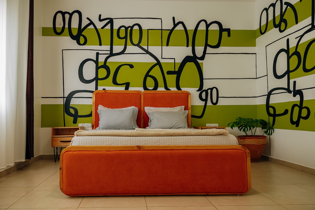 Inspired by the artistry and soul of Lalibela, this bold, design-led room is thoughtfully styled with soft linens, natural wood accents, and calming light, it’s a cozy retreat to unwind after a day exploring Kigali. Guests will also enjoy access to a shared living room, fully equipped kitchen, and a rooftop terrace with fresh air and city views — ideal for slow mornings or sunset evenings. Perfect for couples, solo travelers, digital nomads, or friends.