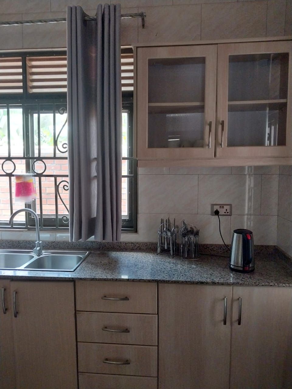 This is a self contained one bedroom apartment with its own entrance, located to the left side of this building complex. Enjoy a stylish experience at this centrally-located place in Kanombe near the Kigali International Airport and the Kanombe Military Hospital and other essential businesses..