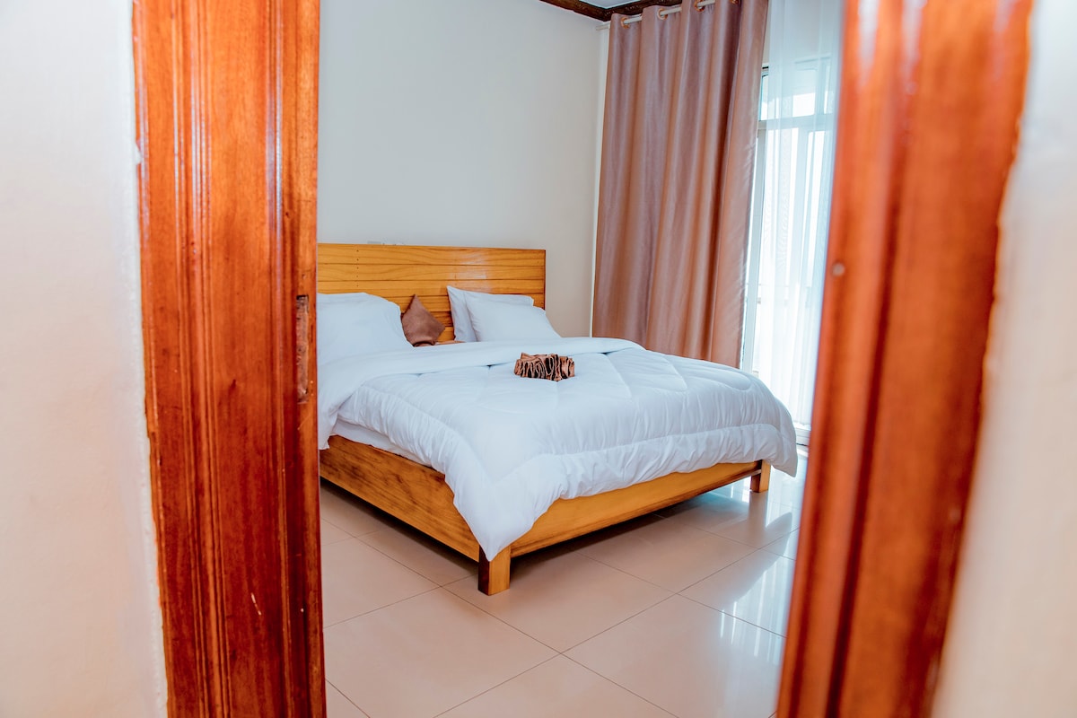 Get ready to refresh in style! This spacious room has a double bed perfect for a restful night sleep. And guess what? Your attached bathroom is here, making your stay even more joyful. 3mins drive to Intare Conference Arena, 5mins away from supermarkets, 15min drive from Kigali international Airport , 20min drive to Kigali convention center, 15min drive to Bk Arena and Amahoro Stadium.