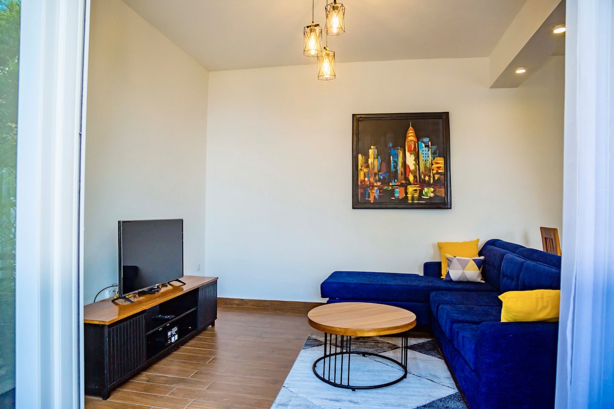 This serene apartment in the heart of the city offers a luxurious and stylish retreat. With a stunning city view from our shared terrace, it's fully furnished with amenities like washroom, TV, internet, and modern kitchen equipment's and AC in all rooms. minimalist decor and natural light create a peaceful atmosphere. The apartment has 24-hour security guard to provide a peace of mind. Whether you're here for business or pleasure, th3 space is perfect for a comfortable and convenient stay.