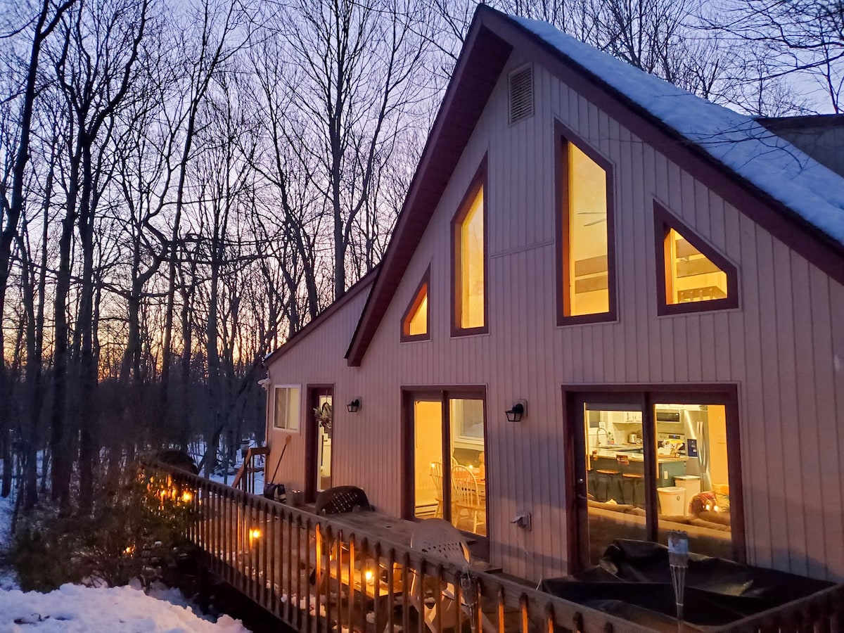 A stunning chalet ideally situated in the Pocono mountains. Your destination for a weekend escape or a longer stay all year round! Outside one can enjoy a natural setting in a beautiful 1-acre private wooded property, hot tub, two fire pits, a deck for morning coffee, or a delicious BBQ. Our home offers a tranquil interior atmosphere and home is conveniently located near all Pocono Mountains' seasonal activities. Whether you want to unwind or recharge, our home provides the perfect retreat.