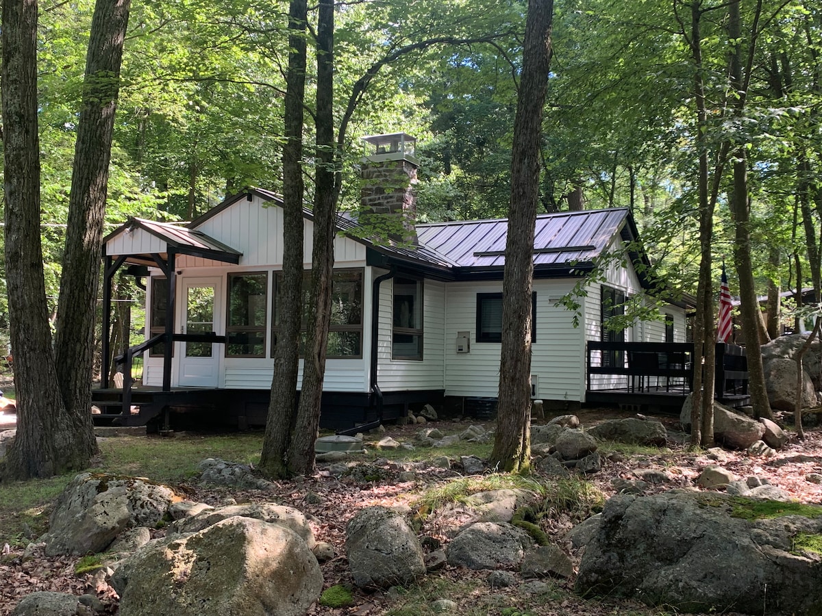 Boulder Cottage! Renovated, traditional cabin nestled in a quiet neighborhood right off the lake, close to ski resort Minutes from- - Split Rock Resorts H2Oooh! Waterpark - Big Boulder & Jack Frost - Pocono Raceway - Hickory Run State Park - Jim Thorpe and Shopping Outlets - Wood-burning fireplace! Firewood can be purchased locally. - Fire Pit - Enclosed patio w nature view! - Fast WiFi + Streaming TV! - Stocked- Fresh linens, towels, cooking supplies! - No pets allowed